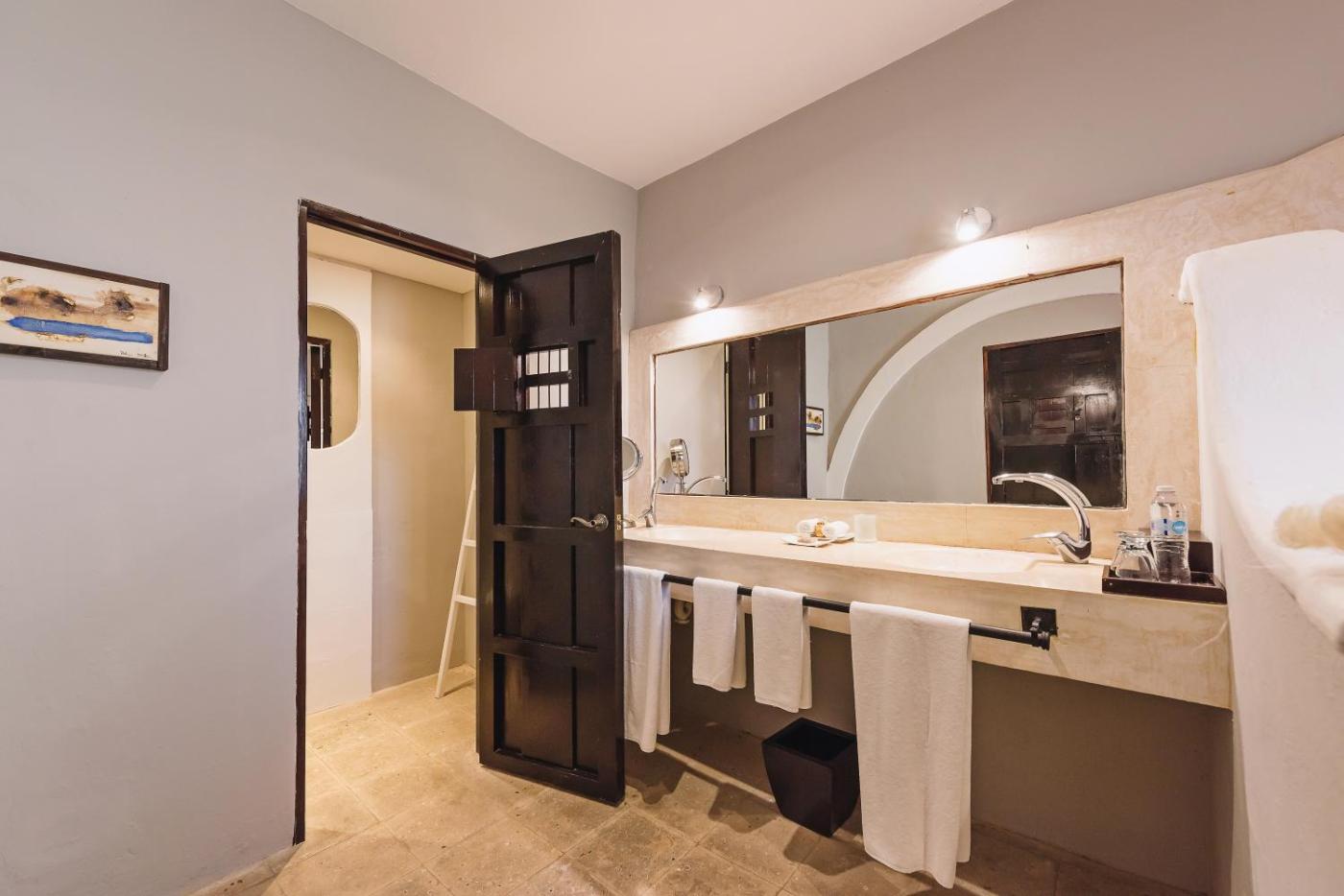 Each air-conditioned room at the Hacienda Mérida has wooden floors and a canopy bed with Egyptian cotton sheets. Toiletries are provided in the private bathrooms.