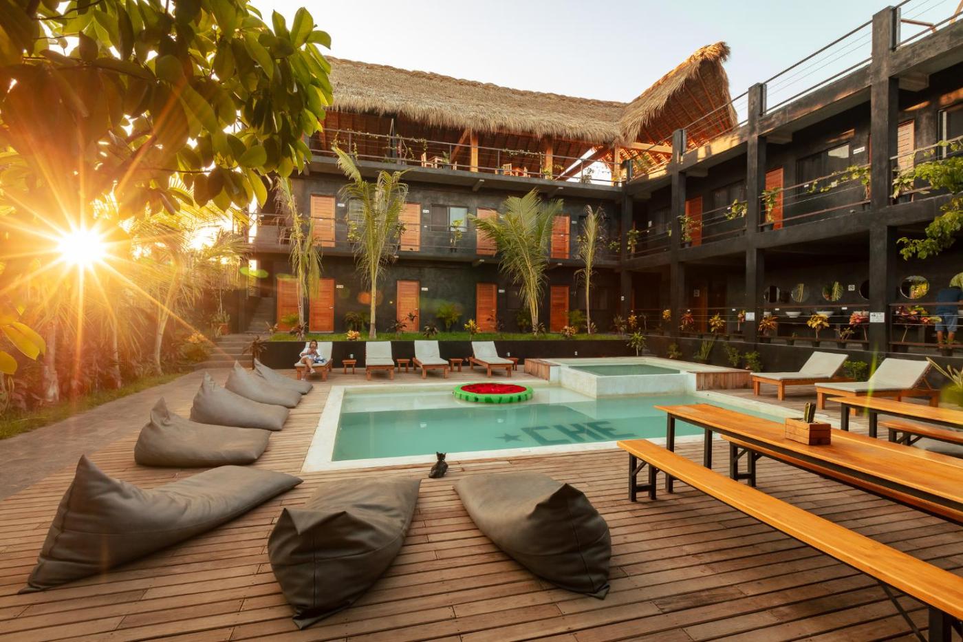 Che Puerto Escondido Hostel & Bar Adults Only has a garden, shared lounge, a terrace and bar in Puerto Escondido. The hostel offers an outdoor swimming pool, hot tub, karaoke and a shared kitchen.